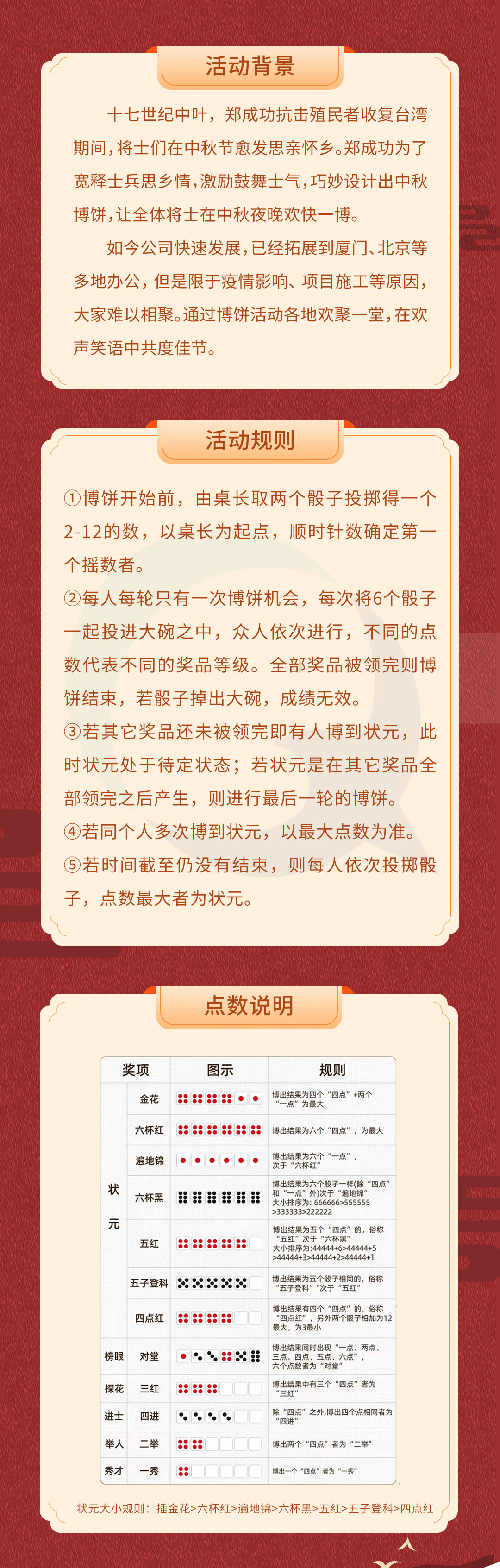 金风送爽,春华秋实。为丰富员工节日文化生活,更好地弘扬中华传统文化,厦门51漫画官网版高科有限公司(以下简称“51漫画官网版高科”)在厦门、北京两地办公区先后开展了“敢博才会赢”中秋博饼活动。
